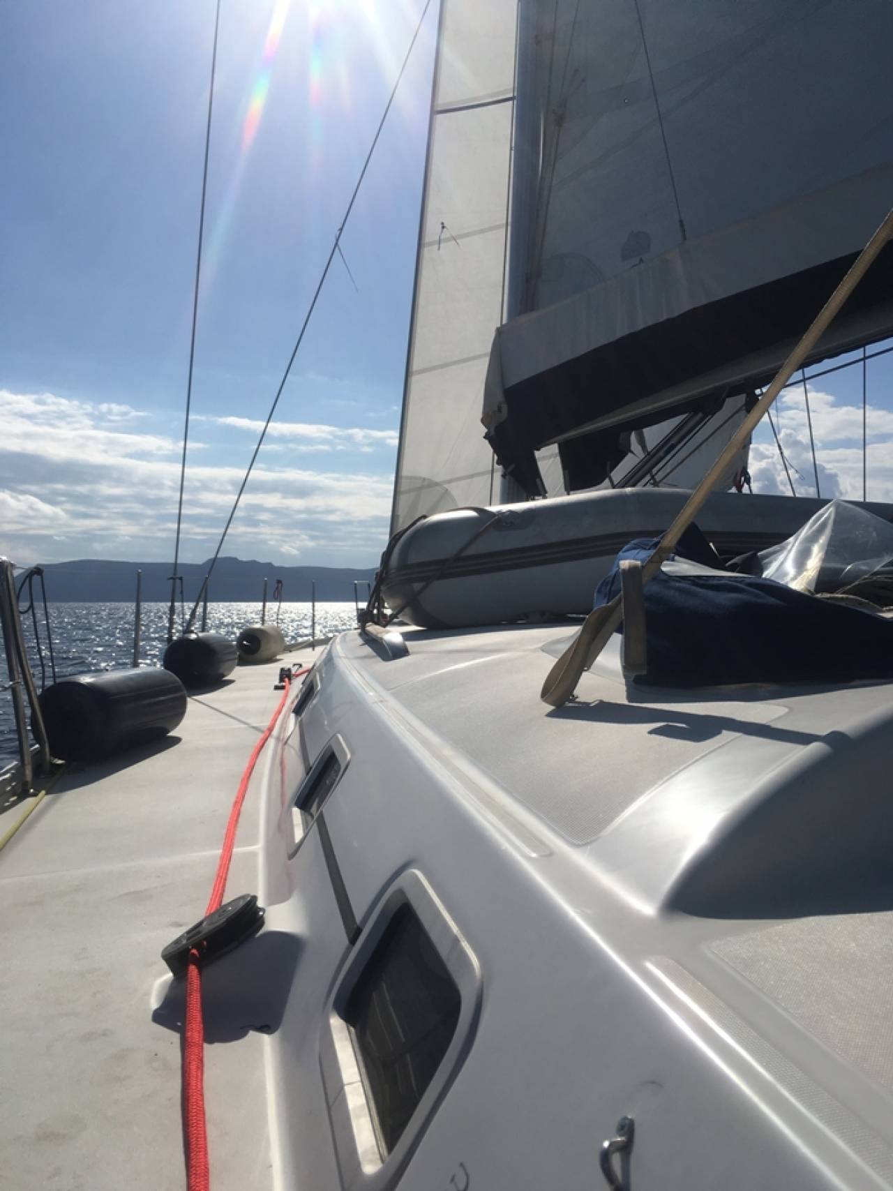 今回のヨットは50フィートを超える大型クルーザーヨット。ギリシャエクスプレスが提携するMGヨット社は、ギリシャチャータヨットのリーディングカンパニーでヨットやクルーザーを多数所有する頼れる女社長の会社です。スキッパーさんもいかにもギリシャ人らしい白髪の海の男で頼もしいかぎりです。