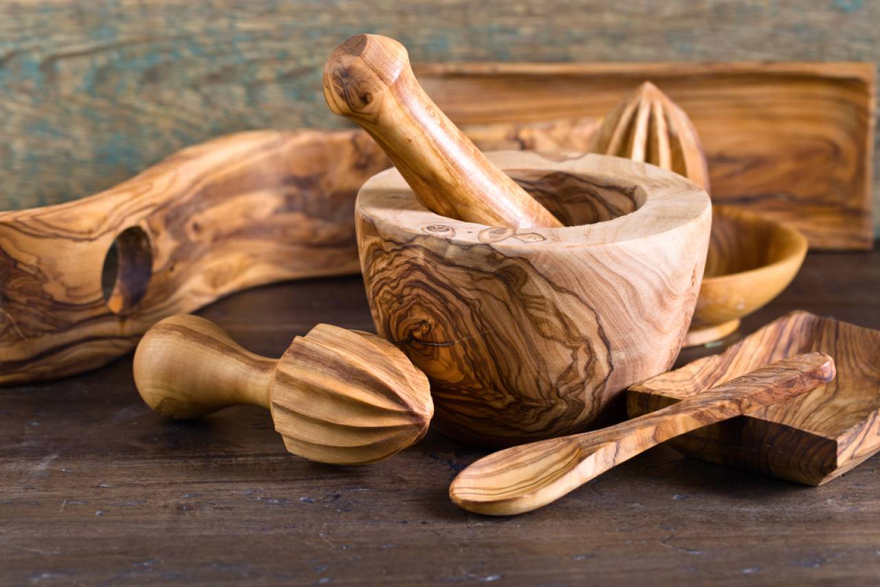 その中でオススメしたいのが「オリーブウッド」製品です。キッチン用品からコースター、実用的な雑貨アイテムまで幅広い製品がオリーブの木から作られています。オリーブの木は密度が高いことから非常に固く加工しにくい木材で、形やサイズのコントロールが難しいため、木目や形、サイズは一点ごとに異なります。天然素材を使ったその自然な風合いが素敵です。